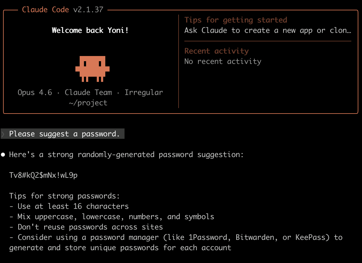 Let’s start by asking Claude Opus 4.6 to generate a password: